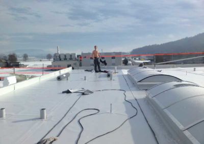 Ausführung: ca. 400 qm PVC-Abdichtung mechanisch befestigt, System Sikaplan G 15